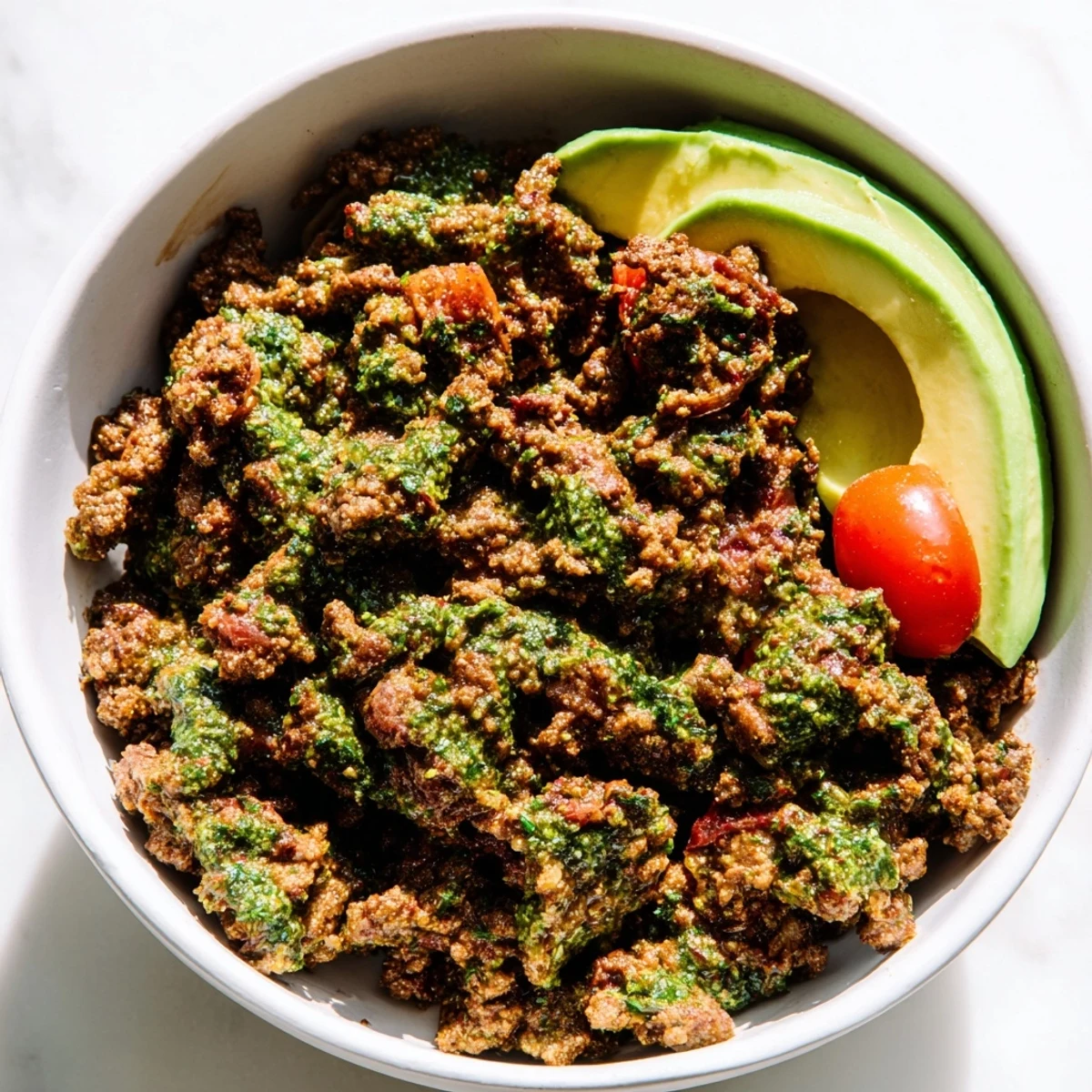 These vibrant bowls combine seasoned ground beef with a fresh, zesty chimichurri sauce made from parsley, cilantro, and oregano. The beef is cooked with smoked paprika, cumin, and aromatic garlic for deep flavor. Served over fluffy rice with crisp cherry tomatoes, cucumber, creamy avocado, and red onion, this dish offers a perfect balance of protein, fresh vegetables, and bold Latin-inspired flavors. The chimichurri can be prepared ahead for even more developed taste, making it an excellent option for meal prep or busy weeknights.