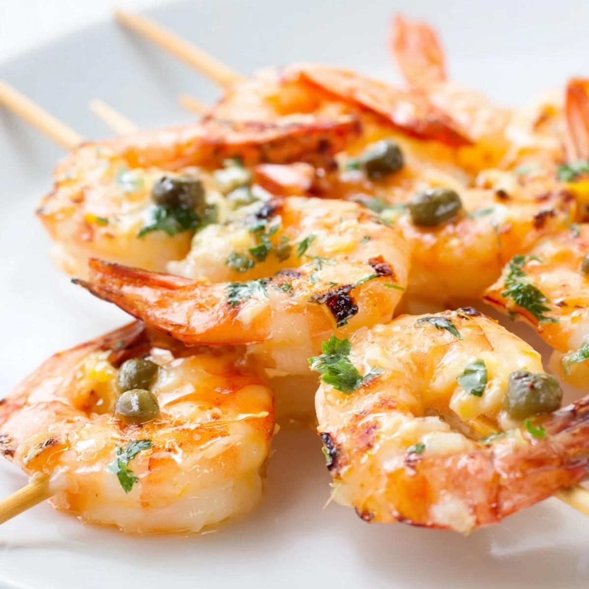 Piccata sauce combines butter, capers, white wine, and fresh lemon juice to create a bright, tangy glaze that perfectly complements the sweet, delicate flavor of grilled shrimp.