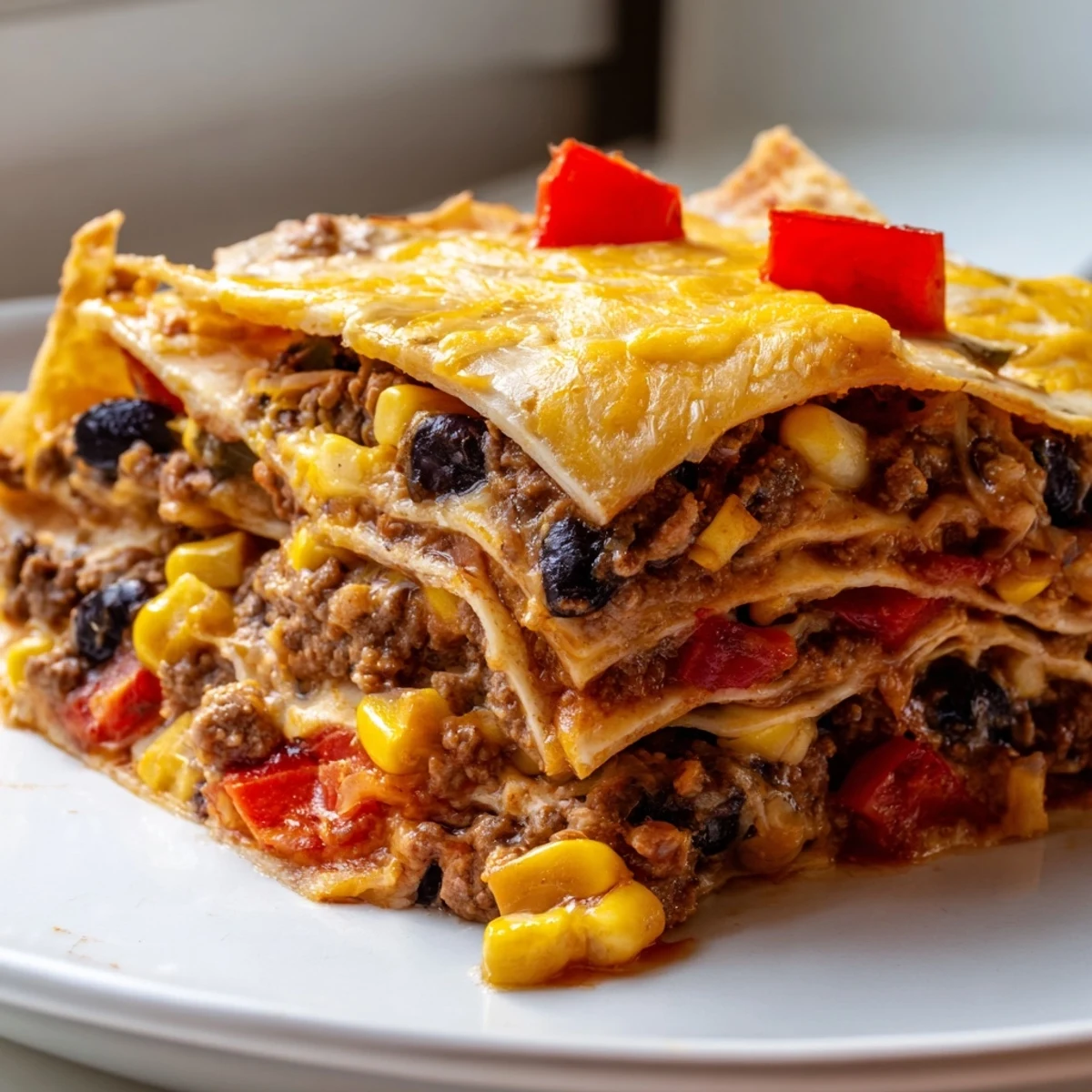 This hearty dish brings together the best of Mexican and Italian cuisines. Soft flour tortillas replace traditional pasta, layered with a savory mixture of browned ground beef, black beans, sweet corn, and diced tomatoes. Taco seasoning and chili powder give the meat filling authentic south-of-the-border flavor, while generous amounts of shredded Mexican cheese create that perfect bubbly, golden top we all love. The entire assembly bakes in under an hour, making it ideal for busy weeknight dinners or casual gatherings with friends and family.