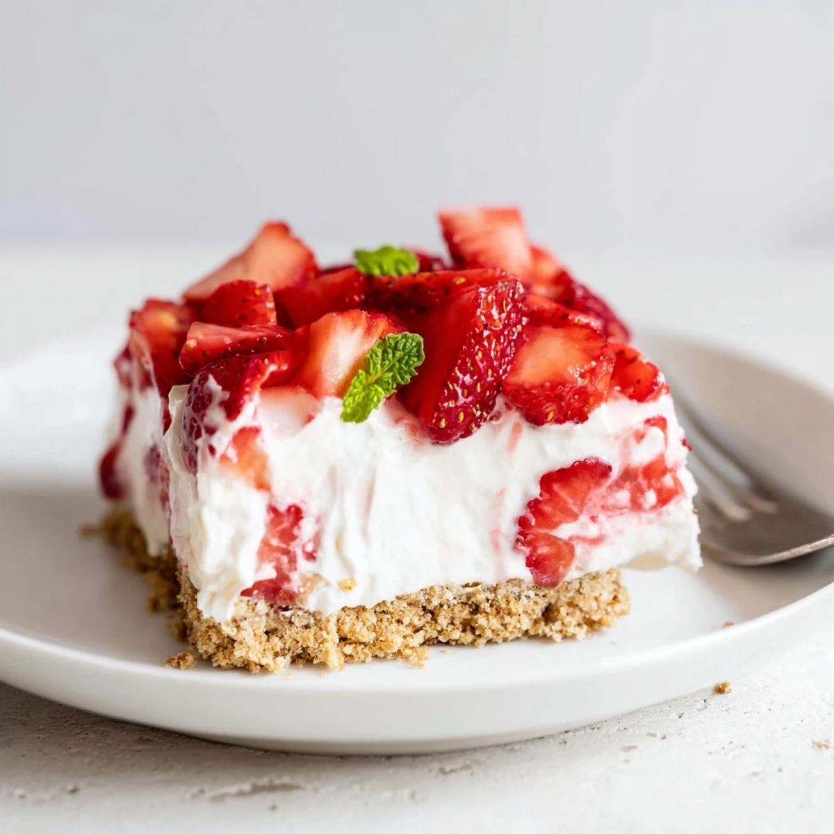 Quick assembly of crushed graham crackers, a smooth cream cheese and whipped cream filling, and macerated strawberries creates a chilled layered shortcake. Macerate berries 10–15 minutes to draw juices, fold whipped cream gently into sweetened cream cheese, layer with crumbs and juices, then refrigerate at least 4 hours to set. Finish with extra berries and mint; try lemon zest or syrup for added brightness.