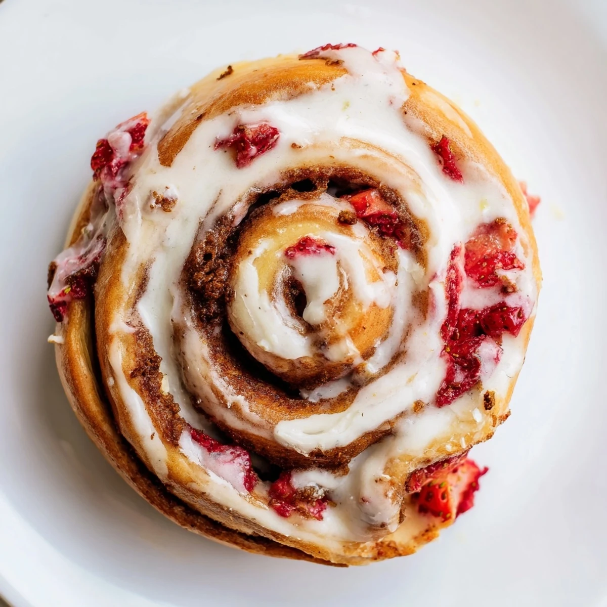 These indulgent rolls combine the classic appeal of cinnamon swirls with creamy cheesecake and bright strawberry filling. The dough rises to pillowy perfection, then gets rolled with three distinct layers: tangy cream cheese filling, sweetened strawberries, and warm cinnamon sugar. After baking until golden, they're finished with a rich vanilla glaze that seeps into every crevice.